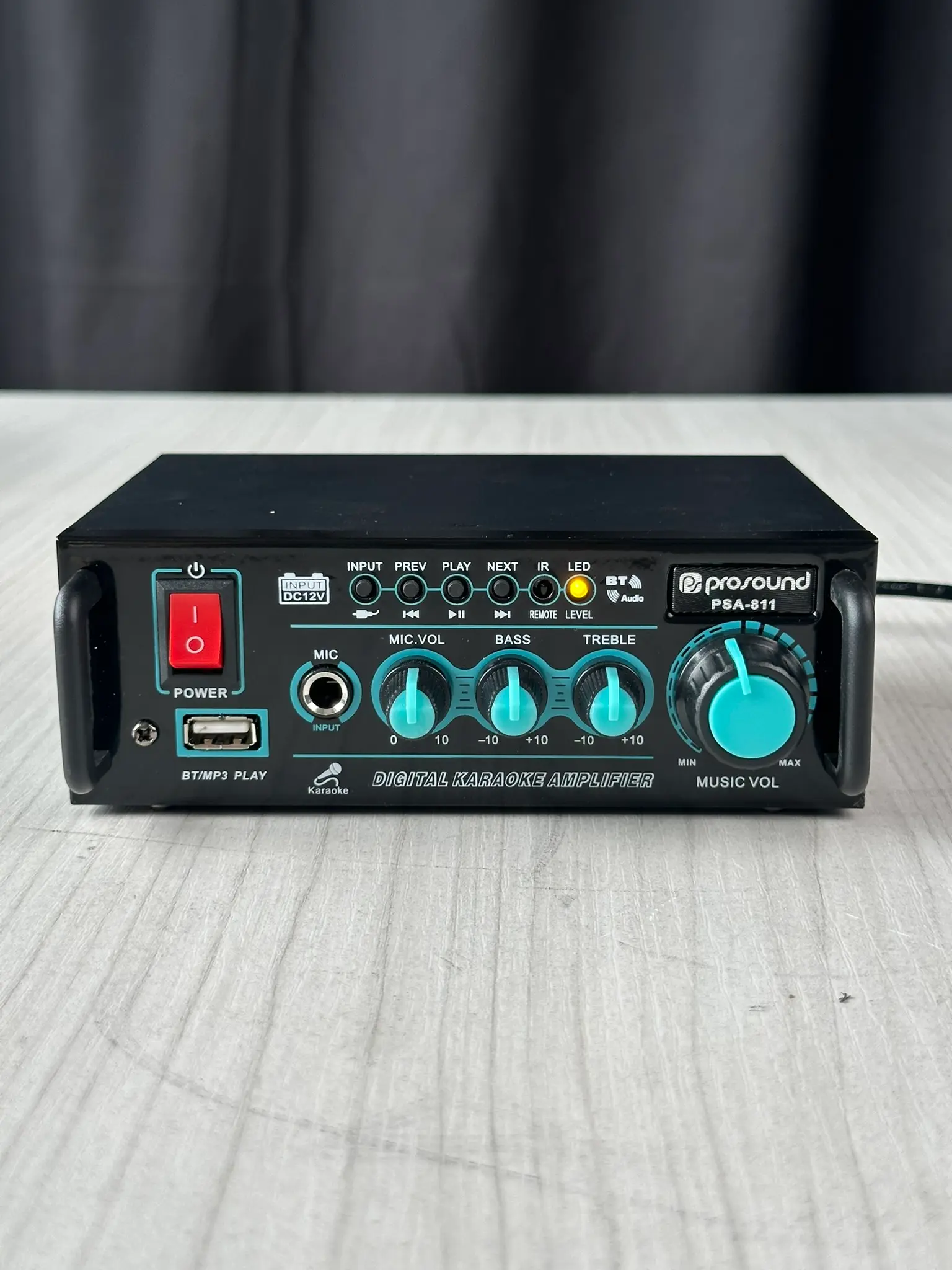 Integra múltiples fuentes de audio (Bluetooth, USB, FM, AUX) con control independiente de tono, volumen y efectos de eco, ideal para karaoke, sonorización de espacios pequeños y reproducción musical.